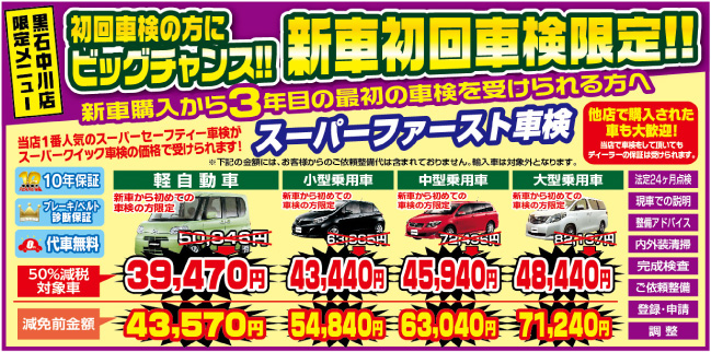 新車初回車検の方にビッグチャンス!