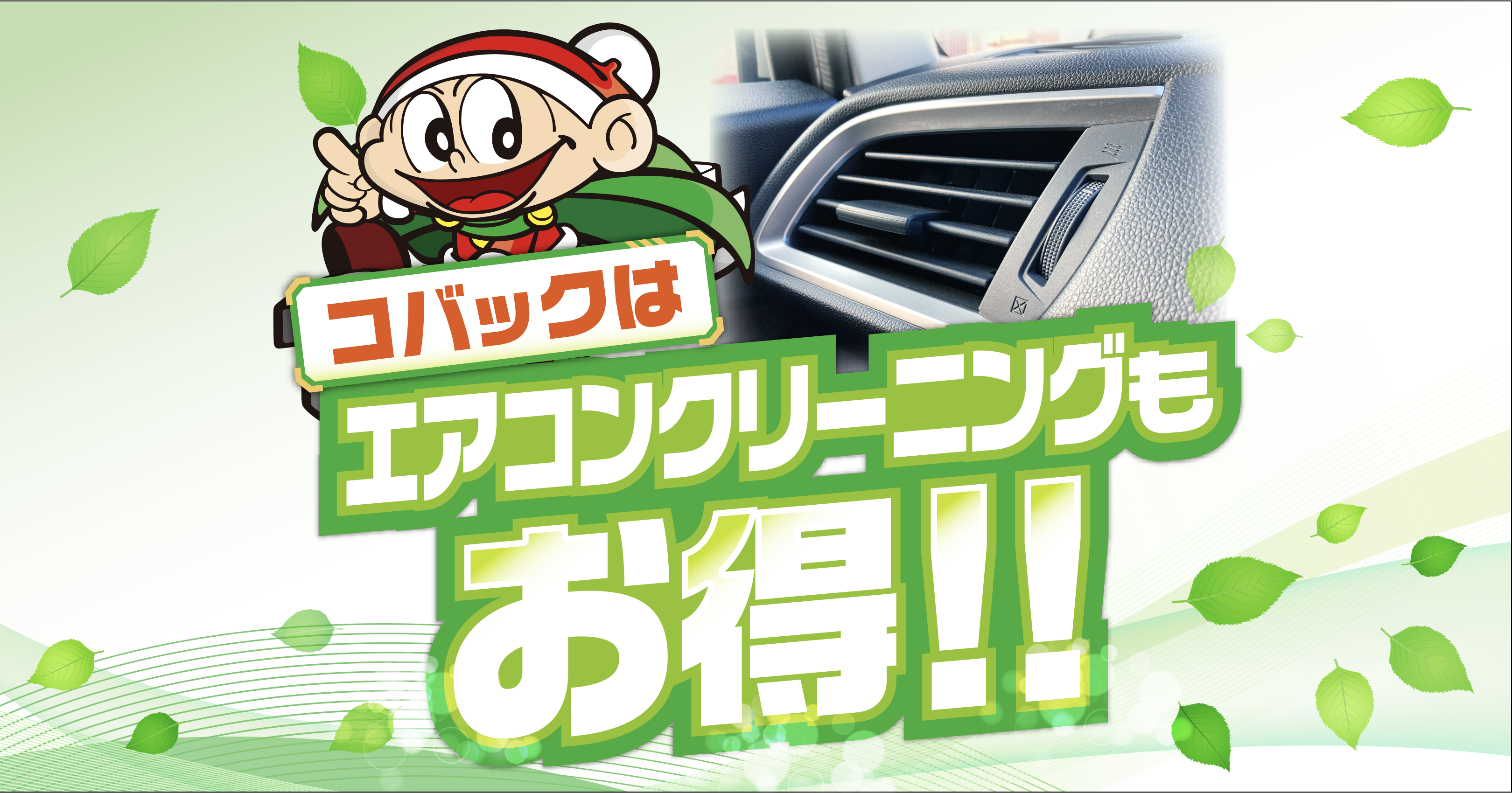 コバックにエアコンクリーニングもお任せ!コバックは車検でおなじみですが、実は他のメンテナンスにも対応しております。もちろん、エアコンクリーニングも対応可能!プロの技術で徹底的ににおいの元を除去致します。